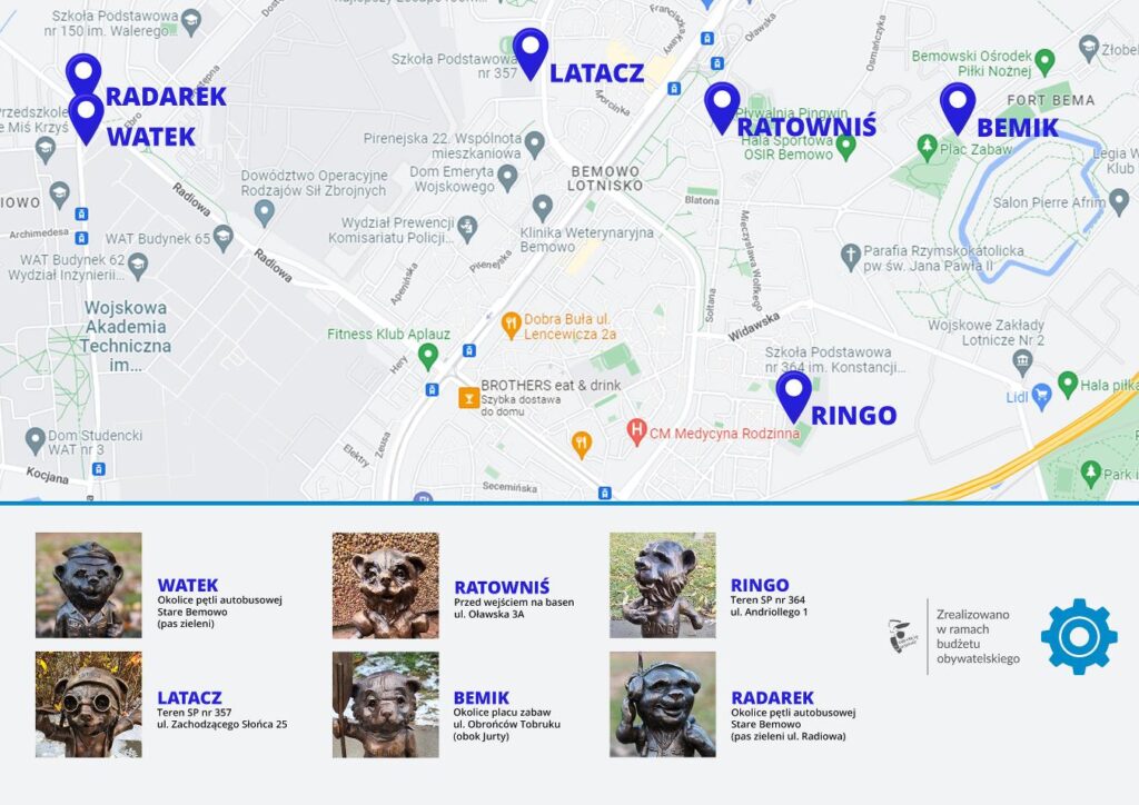 Bemisie to sześć figurek na terenie Bemowa. Szukanie ich to rodzaj podchodów – tylko uwaga – zabawa skończy się, jeśli przyjdzie Wam do głowy znaleźć któregoś misia przed dzieckiem.