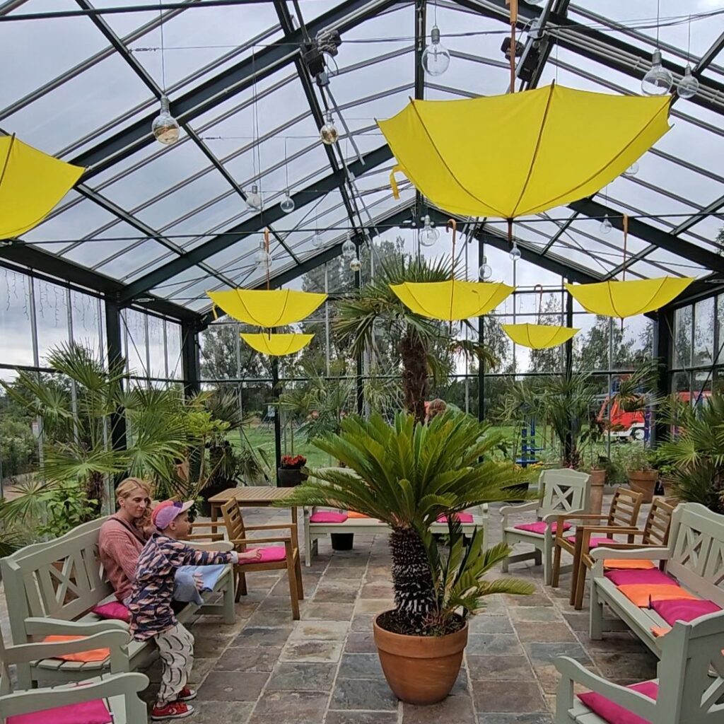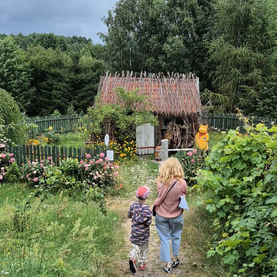 Wioska to bardzo udana synergia kilku konceptów. Ceglane zabudowania i drewniane chaty przypominają skansen, za którym rozciąga się wielki ogród pokazowy z niezwykłymi zakątkami: labiryntem, parkiem japońskim czy domkiem Puchatka. Do tego jest gospoda z lokalnymi specjałami (pierogi z jagodam!) i pracownia garncarska. Z szerokiej oferty można wybrać sobie dowolny 40-minutowy warsztat – m.in. toczenie z gliny na kole, lepienie z gliny czy malowanie na szkle. Nie trzeba się umawiać, z miejsca dostajecie materiały i opiekę eksperta.