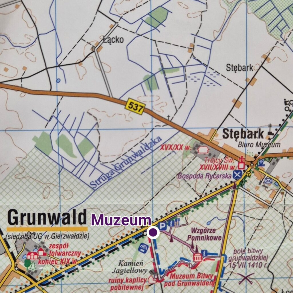 Nowoczesne muzeum bitwy pod Grunwaldem, otwarte w 2022r. 2h20m autem z Warszawy trasą na Gdańsk. Duży parking przed wejściem (Google Maps).